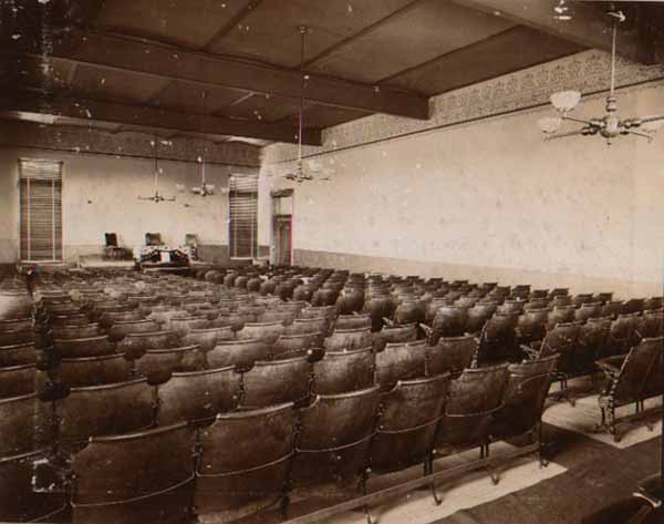The auditorium also held the library's grand piano, donated by Rachel Hampson, and was the site of many musical events in early Fairfield as well as lectures, meetings, poetry recitations, and performances of all varieties.